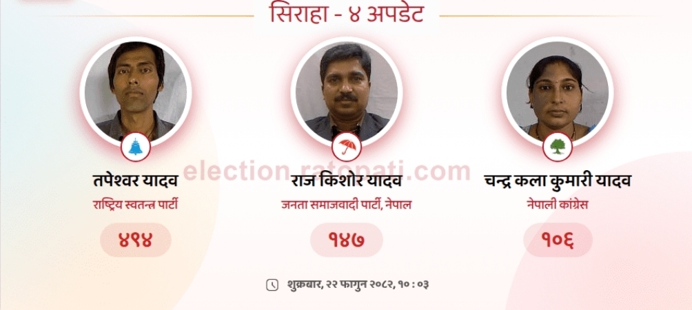 सिरहा–४ को प्रारम्भिक मत परिणाम: रास्वपाका तपेश्वर यादव अग्रस्थानमा